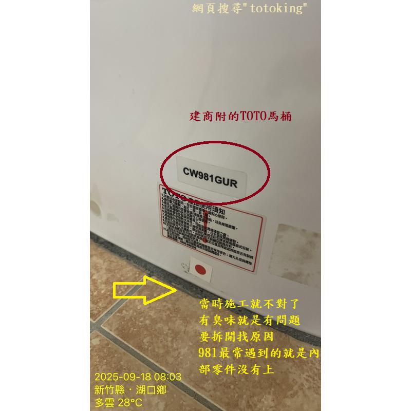 CW981GUR TOTO馬桶重裝 馬桶臭 馬桶沒裝好 TOTO馬桶沒裝好 TOTO安裝找 TOTO師傅 新竹湖口葉先生實例 totoking專業安裝