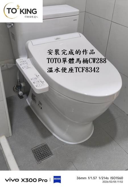 安裝完成的TOTO單體馬桶CW288 以及TOTO免治TCF8342