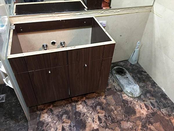 (實況一 : 單體馬桶上面 因為有檯面 但是因為想換上好用的CW260馬桶 所以老舊檯面剛好一次更改)